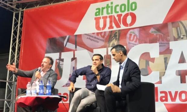 Ospite della Festa nazionale di Articolo Uno, Alexis Tsipras ha testualmente dichiarato: «La verità è che tutte le forze progressiste devono capire che il grande avversario è l'estrema destra. Contro questo nemico serve un fronte europeo vastissimo che parta dalla sinistra della sinistra e arrivi sino ai confini del centro progressista». L'intervistatore Luca Telese, evidentemente sorpreso, a questo punto chiede: questo fronte deve includere anche Matteo...