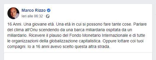 Marco Rizzo ci informa su quello che faceva lui a 16 anni. Ma milioni di sedicenni nelle strade del mondo manifestano oggi la propria denuncia dell’inquinamento del pianeta. Lo fanno con una coscienza politica spesso molto arretrata (per responsabilità non loro) ma con una pulsione progressiva e su un terreno obiettivamente centrale per la contestazione del capitalismo e il futuro dell’umanità. Il PCL è al fianco di questi sedicenni, e dentro il loro...