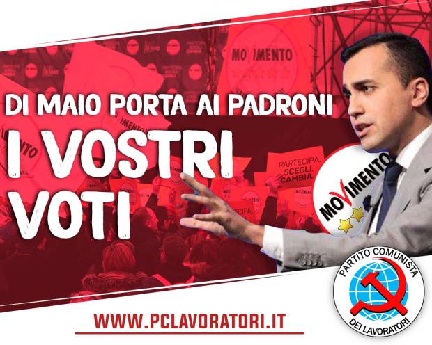 Testo del volantino politico del PCL in diffusione nei luoghi di lavoro L'avevamo detto - contro corrente - per anni: il M5S è un partito padronale. Non siamo stati creduti. Ora parlano i fatti. Certo, sappiamo bene che in molti avete votato M5S il 4 marzo. Chi in contrapposizione ai “vecchi partiti” che vi hanno levato l'articolo 18 e hanno portato la pensione a 70 anni. Chi per sfiducia verso una sinistra irriconoscibile che è stata complice di questa rapina....