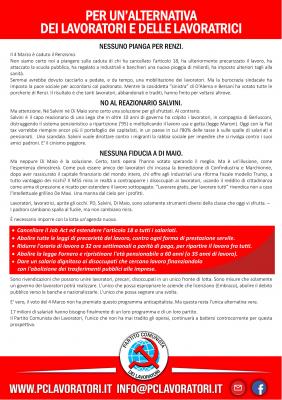 Testo del volantino politico nazioanle del Partito Comunista dei Lavoratori