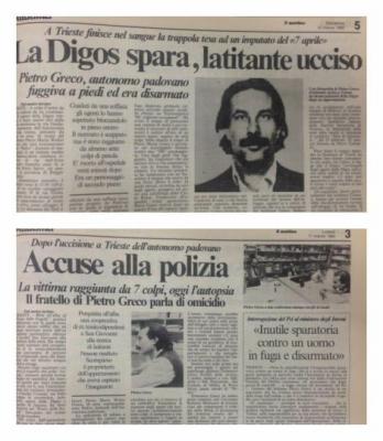 9 marzo 1985 a Trieste. Esecuzione di stato del compagno Pedro