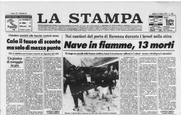 Il 13 marzo 1987 si verificò la tragedia della nave Elisabetta Montanari, che segnerà in modo indelebile il nostro territorio e la nostra memoria di classe. L’incidente avvenne a causa di un incendio, scoppiato nella nave gasiera in secca al porto di Ravenna, che determinò la morte di 13 operai, molti giovanissimi tra i 18 e i 25 anni, alcuni al loro primo giorno di lavoro. I lavori con una fiamma ossidrica innescarono l’olio fuoriuscito da una tubazione:...