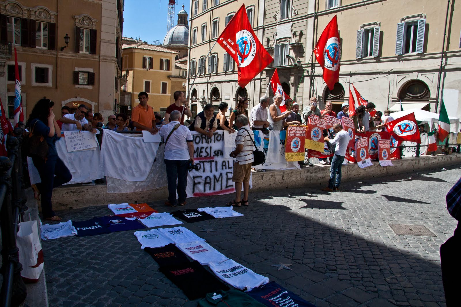 Pur in pieno Agosto, e con tempi di preparazione strettissimi, l' odierna iniziativa di protesta del PCL a Montecitorio contro la rapina del governo e l'unità nazionale dei sacrifici, ha registrato una buona riuscita.